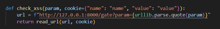 However, you may notice that in the script, our URL is not enclosed with quotes by default. To bypass the URL encoding in the check_xss() function, we just have to enclose the URL ourselves with backticks.
