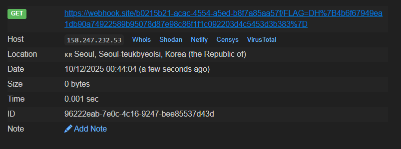 print("> URL reported")The webhook will then receive the flag cookie after the report is made.