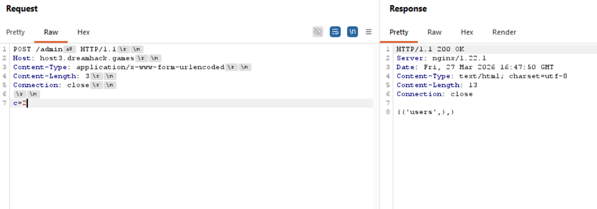 cursor.close()The server does provide another endpoint that could potentially allow us to bypass these limitations.