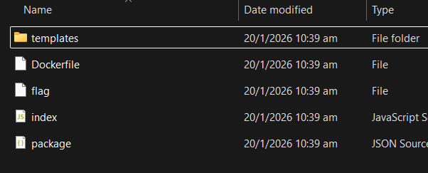 }The dist also provides an example flag file, but it isn't referenced anywhere in the backend code, which further hints towards RCE.