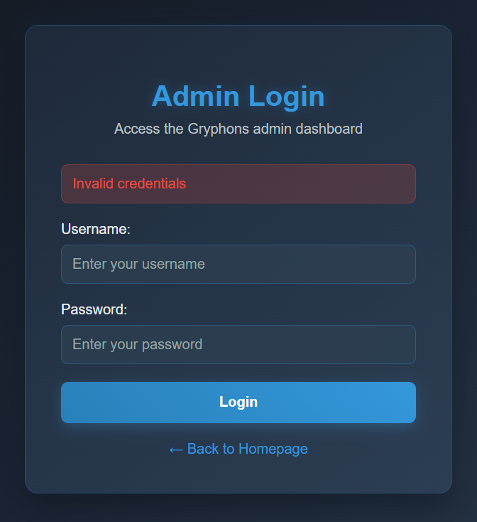 There is also an admin login page, but all attempts at SQLi fail, so the login can't be that straightforward.