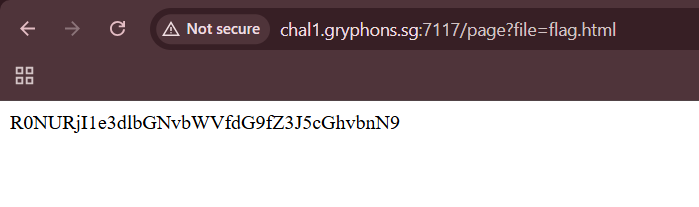 After some guesses, I found a file called flag.html, which displayed the Base64-encoded flag.