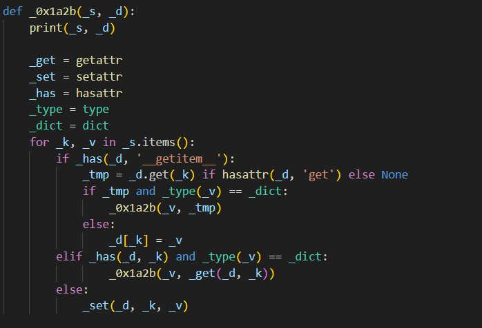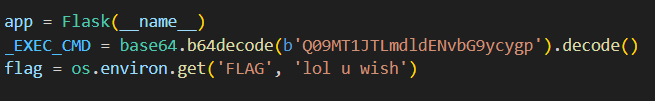 We can easily craft a payload that will cause the vulnerable function to recursively traverse to the global scope, where we can then overwrite _EXEC_CMD to flag.