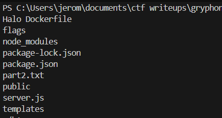 To spare you the details, we have to read flags/part1.txt, flags/secret.bat, part2.txt and server.js to retrieve and reassemble all parts of the flag.