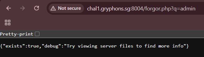 In the forgor.php page, we can confirm that an admin account does indeed exist on the server.