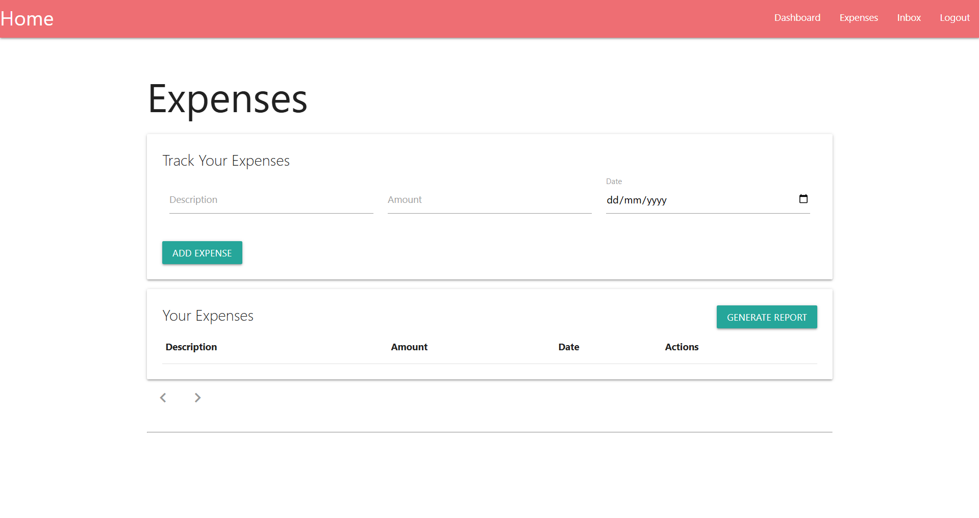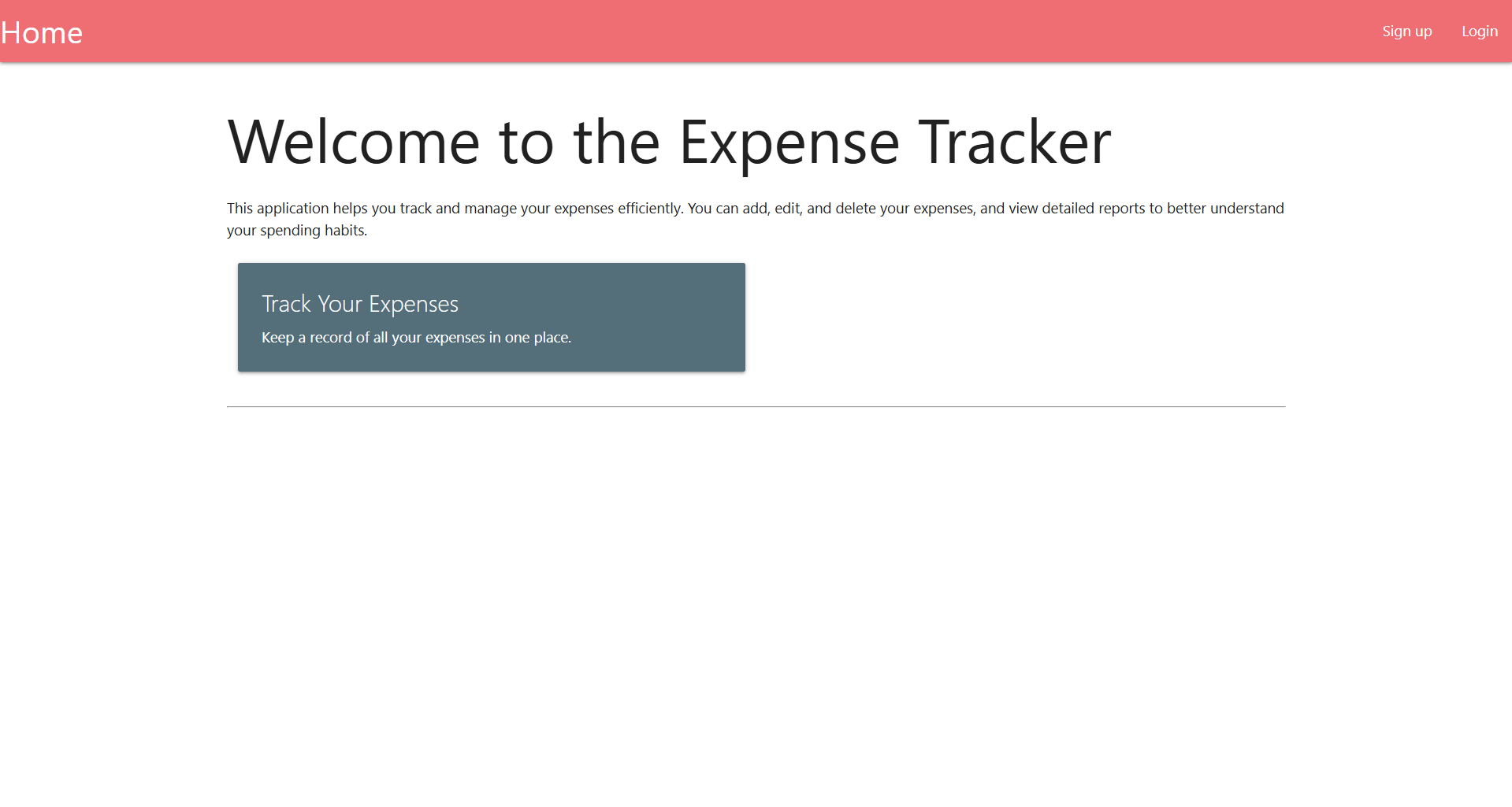 We are given a webpage where we are able to log and track expenses. The webpage has registration and login functionalities as well.